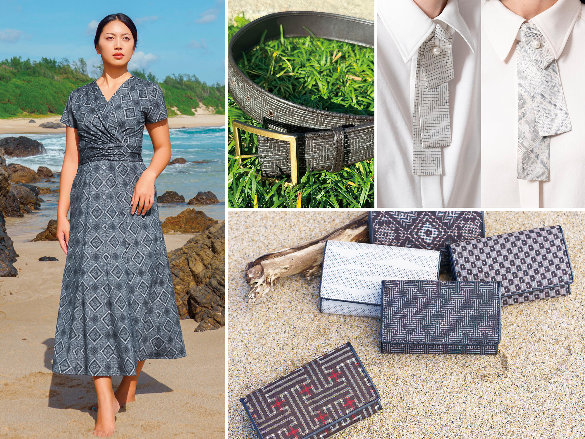 (写真左)奄美大島に息づく龍郷柄を、機能性素材で現代的に表現。伝統意匠を日常に溶け込ませた一着に。