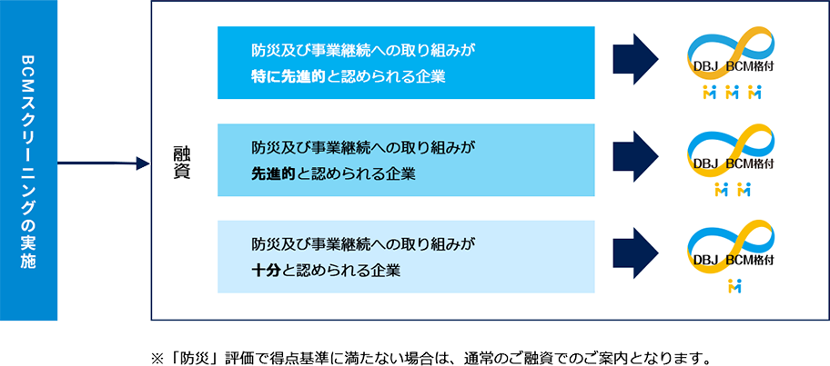 BCM(Business Continuity Management)格付融資は、防災および事業継続への取り組みが優れた企業を評価・選定する「BCM格付」の手法を導入した世界で初めての融資メニューです。